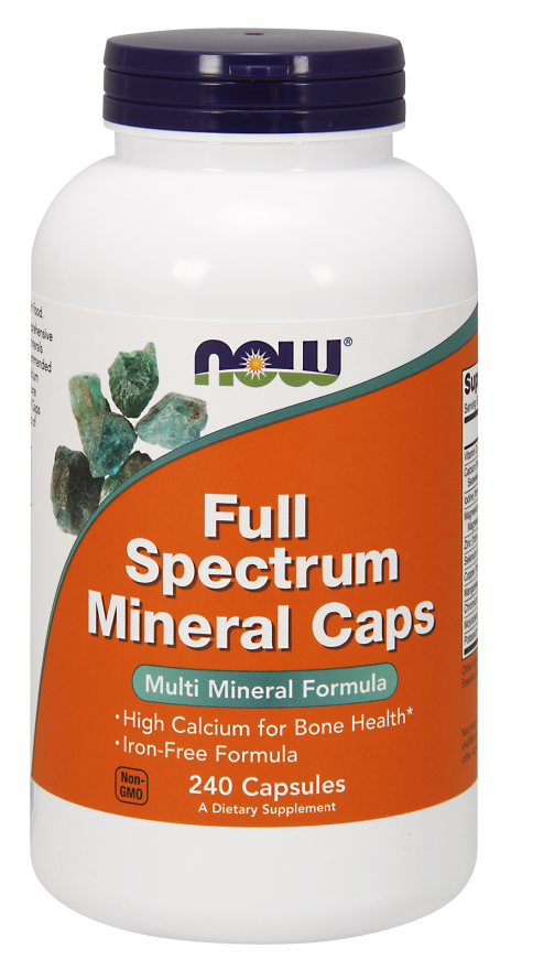 FullSpectrum Mineral caps. to złożony zespół najważniejszych mineralnych składników odżywczych z których korzysta organizm. Preparat zawiera zalecane dawki niezbędnych składników — jak wapń dla mocnych kości i zębów oraz cynk dla wsparcia układu odpornościowego. Produkt nie zawiera żelaza oraz dostarcza wapnia i magnezu w proporcji 1:1.