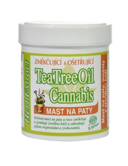 Ziołowa maść z konopi i z olejkiem z drzewka herbacianego przeznaczona jest do pielęgnacji i nawilżania popękanej skóry pięt, stóp i rąk. Zmiękcza stwardniałą skórę, zapobiega pękaniu i zrogowaceniu. Skutecznie chroni skórę przed wysuszeniem, pozostawiając ją miękką i delikatną. Zmniejsza pocenie, zapobiega tworzeniu się pleśni i grzybów.