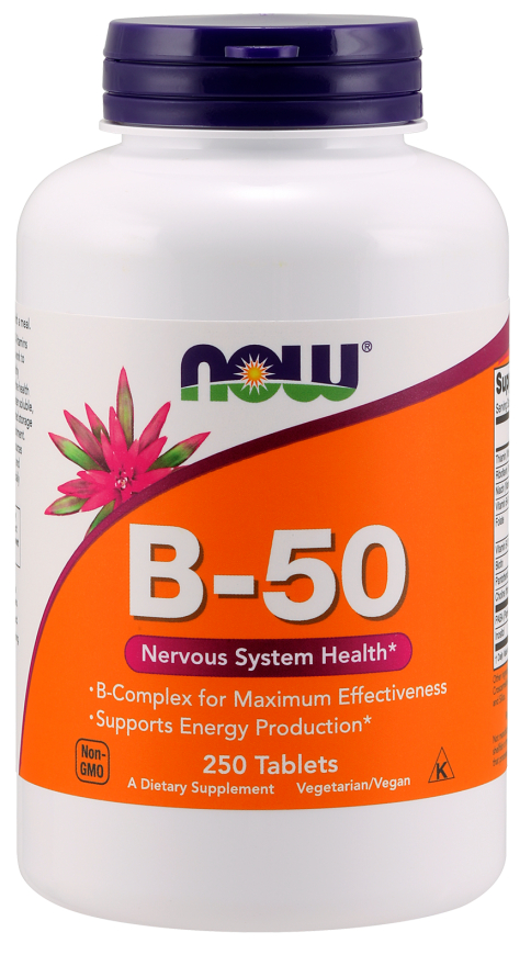B-50 to kompleks witamin zawierający unikalną mieszankę witaminy B-1, B-2, B-6, B-12, kwasów foliowego i pantotenowego, biotyny, choliny, biotyny, inozytolu oraz PABA (Kwas p-aminobenzoesowy). W odpowiednio dobranym kompleksie witamin z grupy B wszystkie składniki działają łącznie i wzajemnie wzmacniają skuteczność swojego działania w organizmie. B-50 to nowoczesny preparat który działa dostatecznie długo aby stopniowo uwalniać substancje czynne, co jest o tyle ważne, że witaminy te rozpuszczają się w wodzie; dzięki przedłużonemu wchłanianiu nie zostają od razu wydalone i organizm może korzystać z nich przez dłuższy czas. Ta unikalna formuła zawiera także wiele substancji odżywczych które wspomagają metabolizm. B-50 jest znakomitym środkiem anty-stresowym.